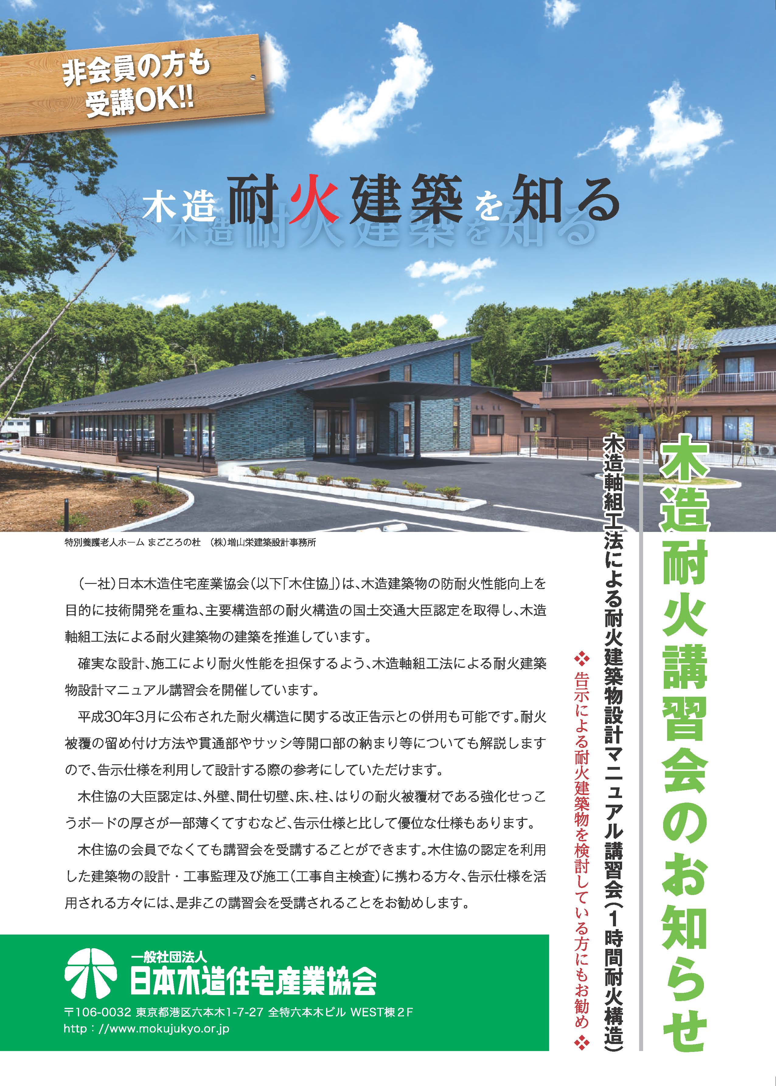 なお、同日午後より【1時間耐火構造】の講習会を開催しております。